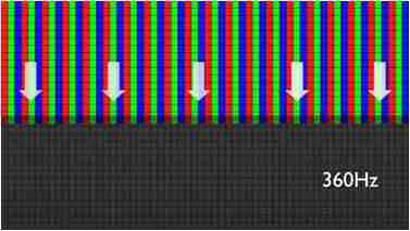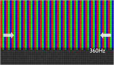 传统液晶驱动是从左到右单向进行,,,在画面更新速度愈来越愈快的情况下,,位于驱动线路末端的右下角区域,,,画素的闸极来不及在短时间内获得足够电压,,无法显示出正确的颜色资讯。。。。 |
