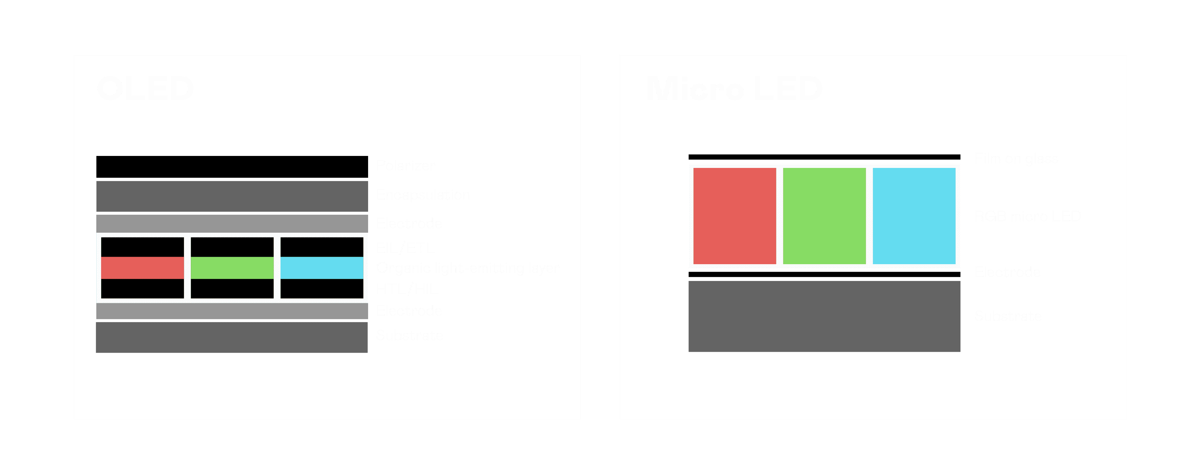 以 LED 做为显示画素,,,可让 LED 的发光效率发挥到极致,,从而让显示器具备优异的亮度表现,,,不论是在户外或室内,,,,均具备出众的显示效果。。同时,,与使用有机材料的 OLED 相比,,,,LED 具备更稳定、、、寿命更长的特性,,不仅不会有画面烙印问题,,,,而且更不容易出现故障、、、坏点。。。