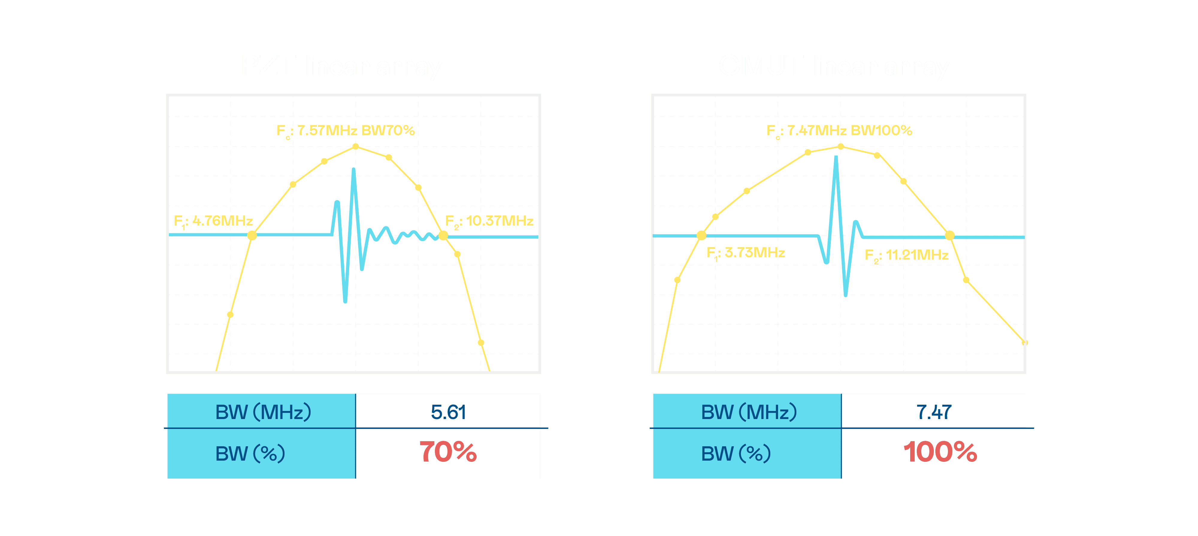 超音波影像的解析度高低,,,,首先取决于探头能发出的讯号频宽。。。。2468BET CMUT 可提供高清晰的超音波讯号,,提供高频宽、、、、高灵敏度、、影像纹理细节更高的超音波影像,,协助医护人员缩短影像判读时间及利用精准的医疗影像进行诊断。。。